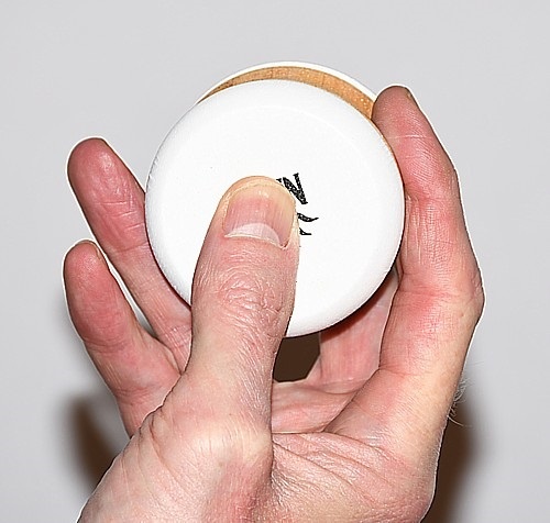 Etwas fester drücken/wieder lösen macht das Rasseln höher/wieder tiefer.
